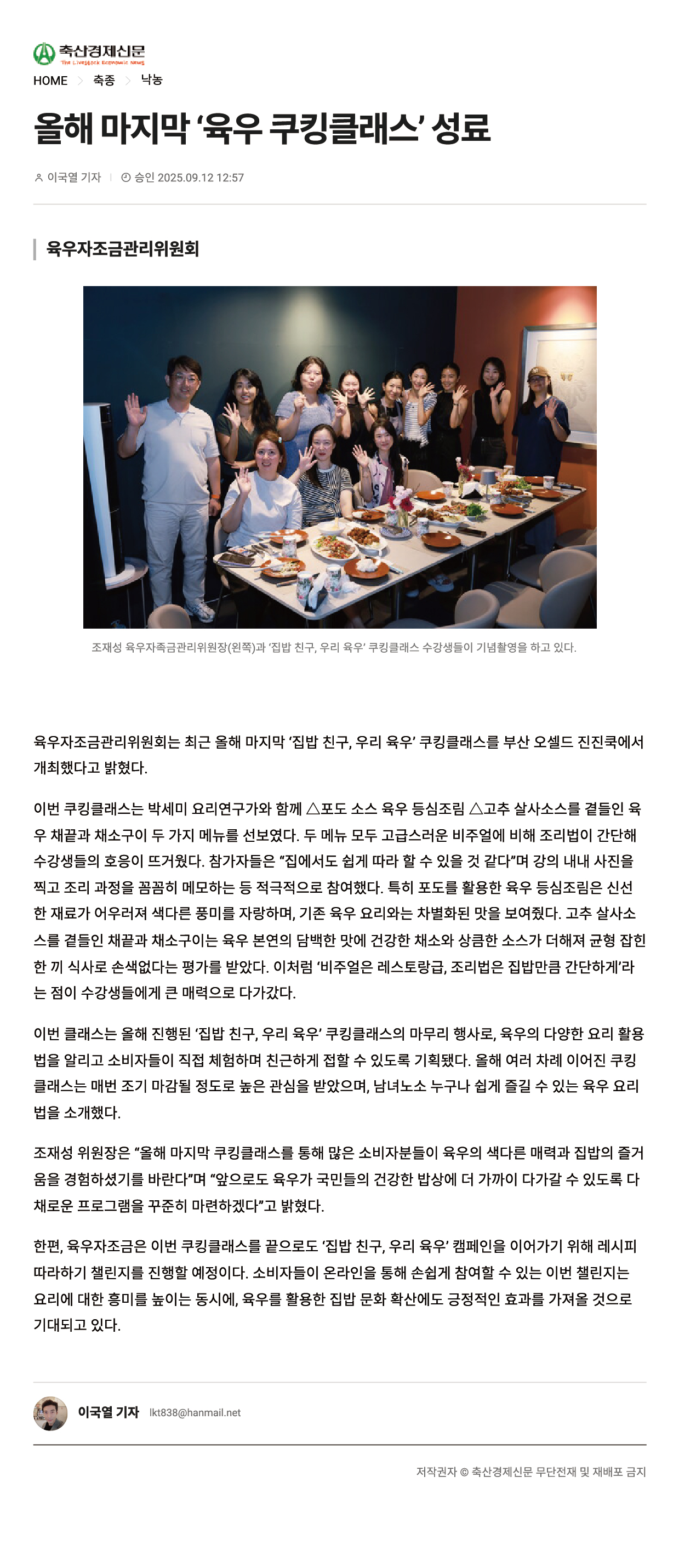 [언론보도] 육우자조금, '집밥 친구, 우리 육우' 쿠킹클래스 성료
