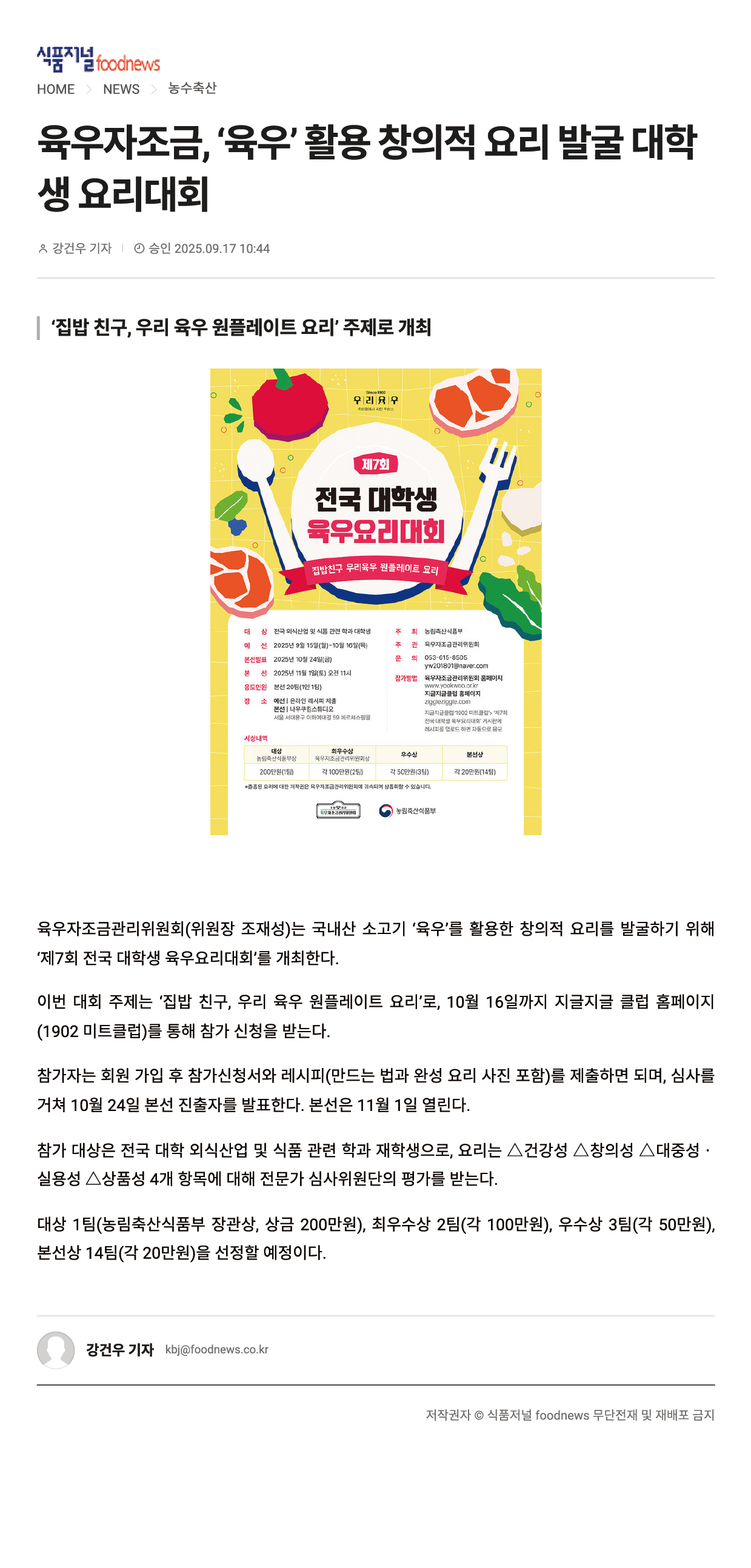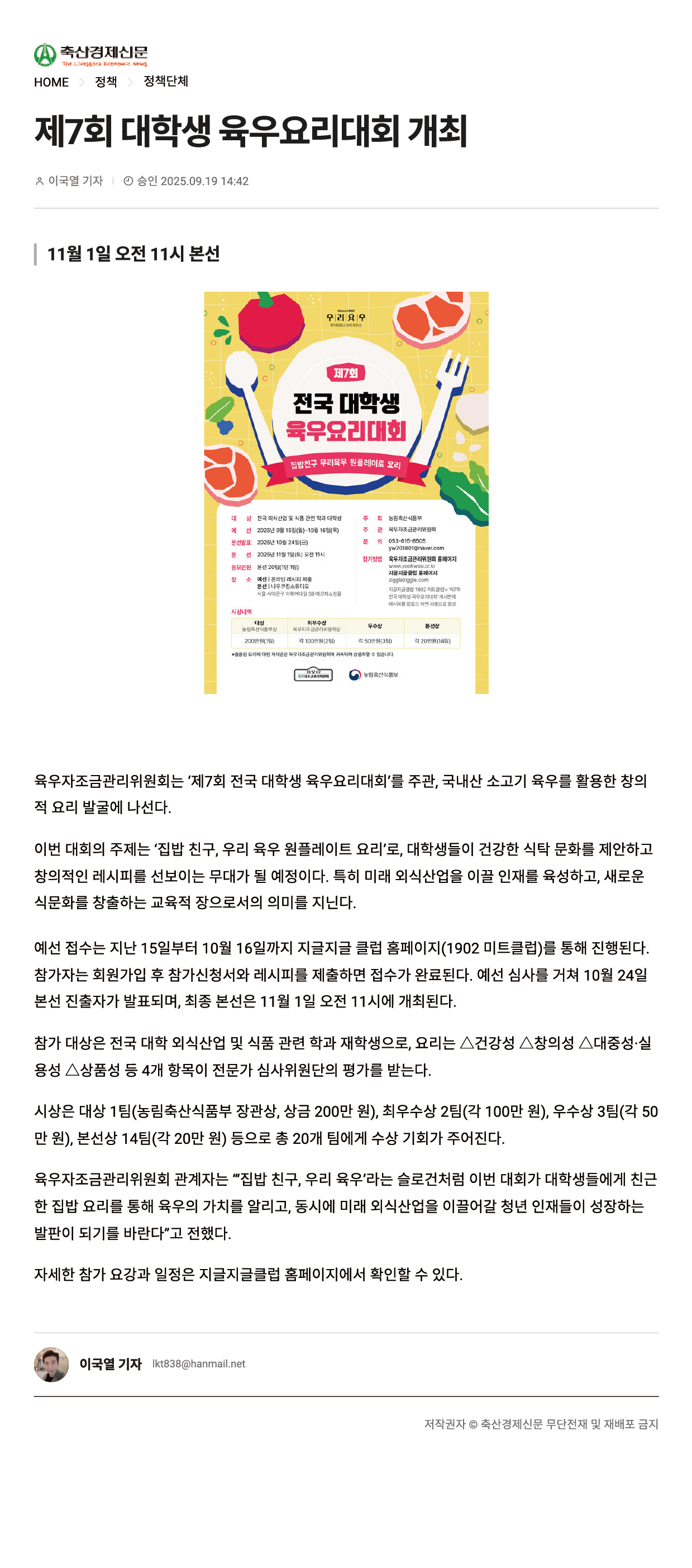 [언론보도] 육우자조금, 건강한 집밥 문화 확산 나서
